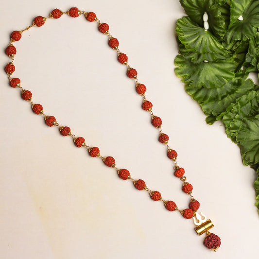 Golden Plated Mahadev Trisul Rudraksha Necklace/Mala