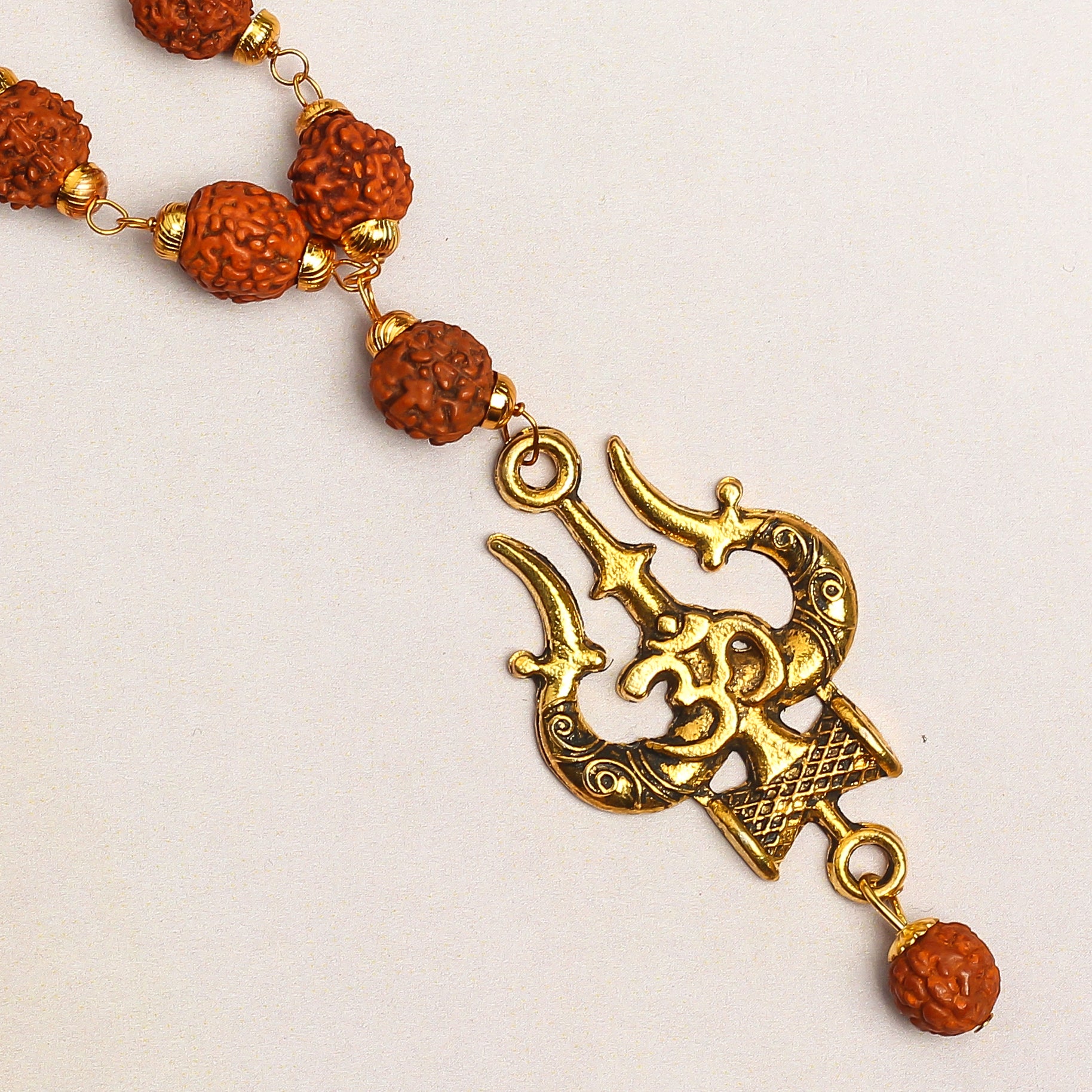 Golden Plated Mahadev Om Trisul Rudraksha Necklace/Mala